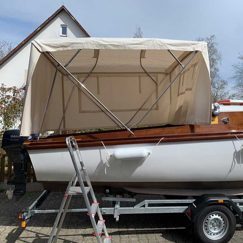 Please note that if this option is chosen, the front extension will be the same length as the height of the bimini. Not the usual 150cm length for front extensions. By default, the rear and side extensions are set to the height of the bimini top, so no adjustment is made here.