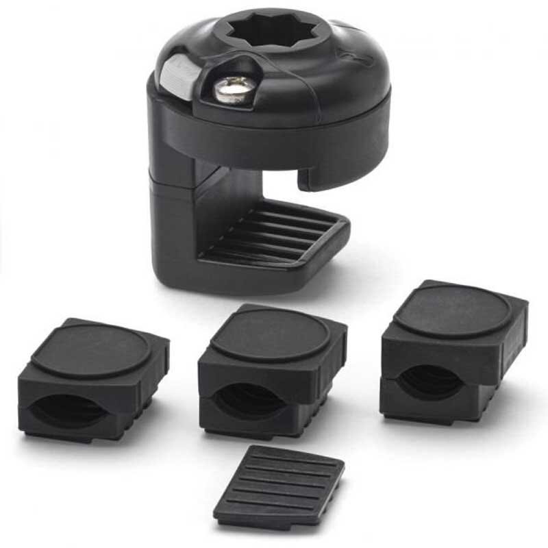 Les inserts en caoutchouc fournis empêchent tout glissement lors de la fixation au bimini, tandis que le loquet StarPort intégré maintient l'accessoire monté en place.